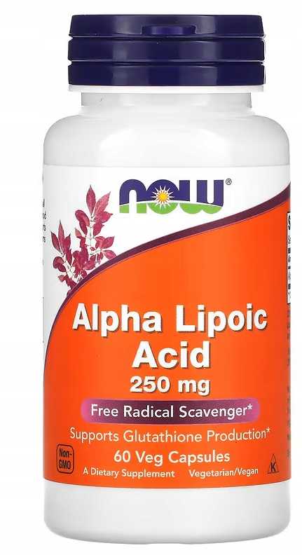 KWAS ALFA LIPONOWY 250 mg 60 kapsułek NOW FOODS