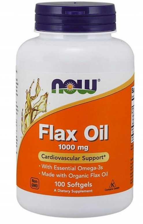 OLEJ LNIANY 1000mg 100 kaps żel Now Foods FLAX OIL