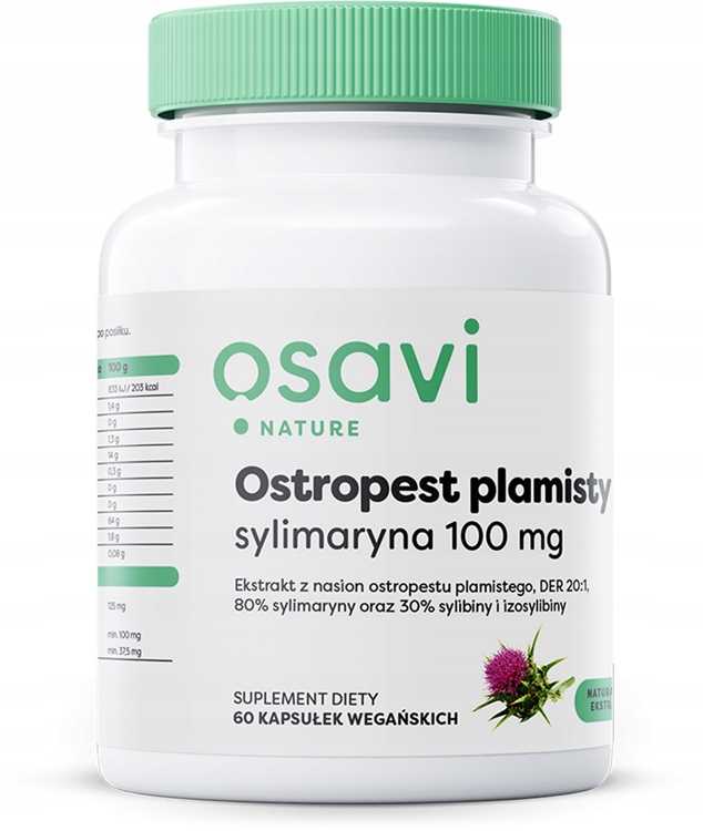 - Zawiera ekstrakt z nasion ostropestu plamistego (Silybum marianum), DER 20:1, standaryzowany na min. 80% sylimaryny oraz 30% sylibiny i izosylibiny.