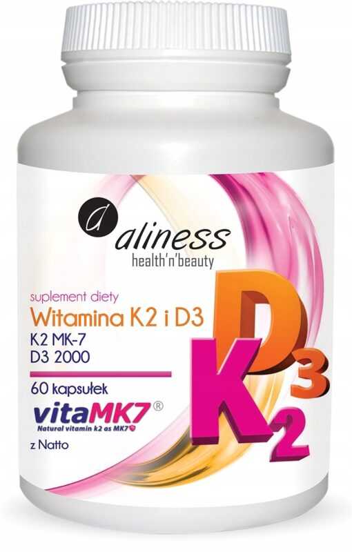 Naturalne źródło witaminy K w postaci MK-7 w ilości 100 µg w połączeniu z witaminą D w ilości 2000 j.m.